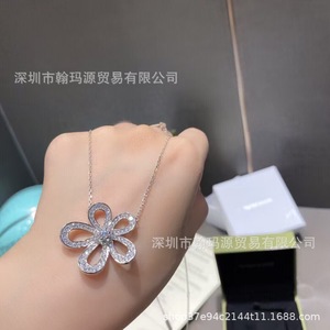 s925纯银高版本CNC扣五叶大花朵满钻项链女轻奢百搭太阳花锁骨链