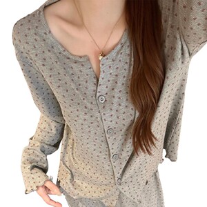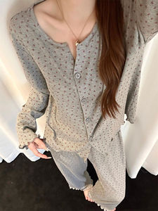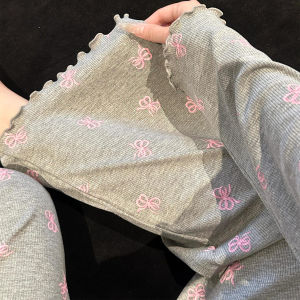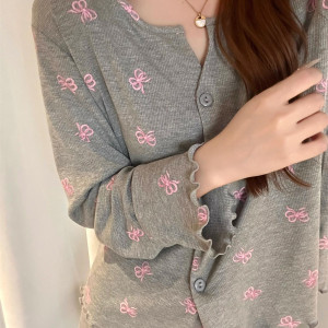 韩版甜美蝴蝶结印花莫代尔睡衣女2025新款大码舒适长袖家居服套装