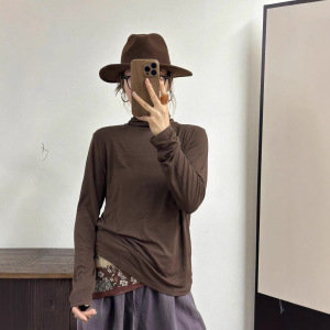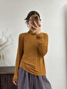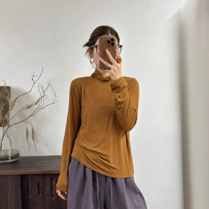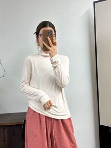 新品纯色文艺百搭弹力棉长袖高领气质通勤打底衫