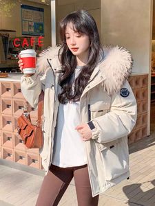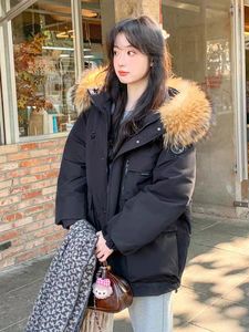 韩国女装短款大毛领羽绒服女冬季2025新款韩版宽松白鸭绒派克外套