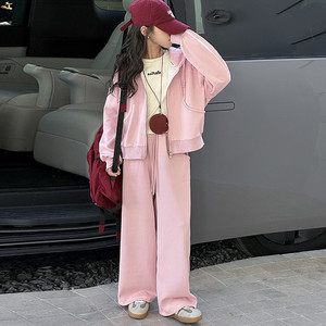 女童运动套装春秋款2025年新款中大童卫衣开衫阔腿裤两件套早秋潮