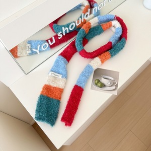 秋冬新款多巴胺彩虹条纹细窄长条围巾女韩版百搭时尚氛围感围脖潮
