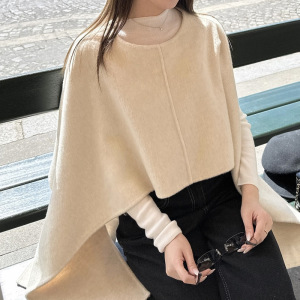 时髦姐姐 风格款天丝双面呢斗篷时尚女士呢子百搭夹克披风