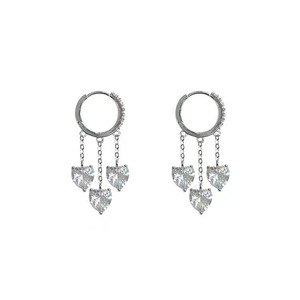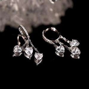 闪钻爱心流苏耳扣女耳环耳饰个性小众设计高级感百搭时尚百搭新款