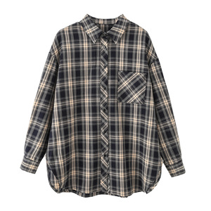 2025秋季新款雅痞风衬衫宽松翻领衬衣格纹上衣轻薄女D383O1041C00