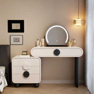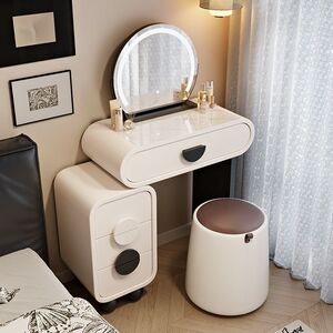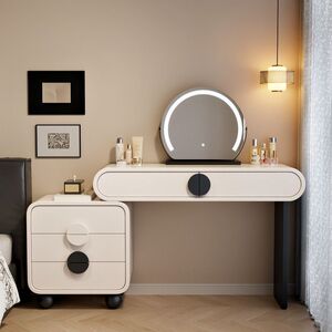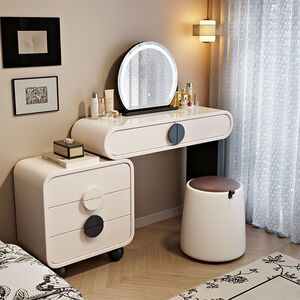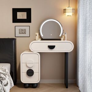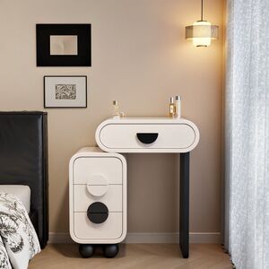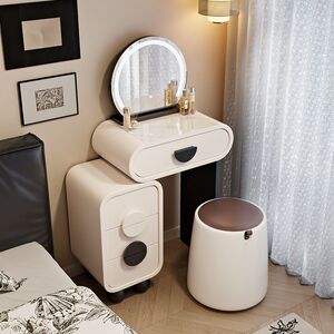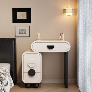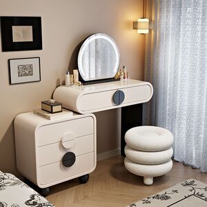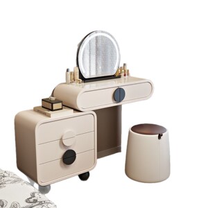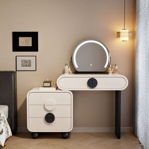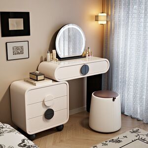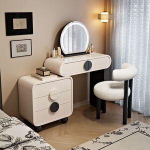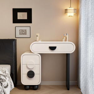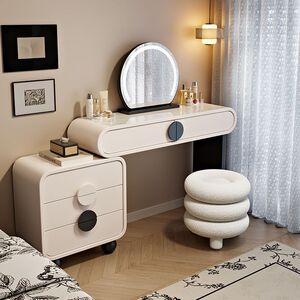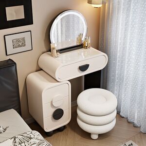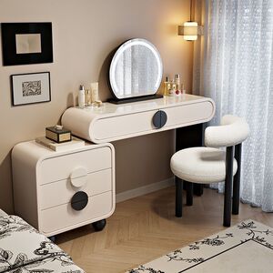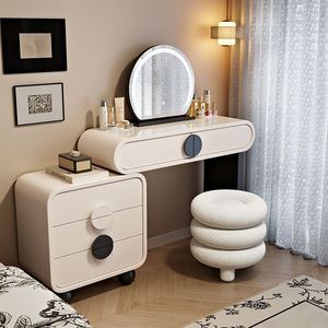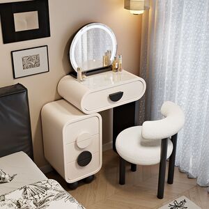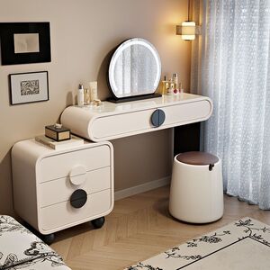 新款法式圆弧梳妆台卧室梳妆台斗柜一体书桌化妆桌轻奢奶油简约风