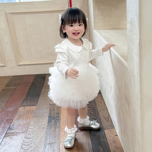 女童2025秋季新款公主裙宝宝礼服白色花童蓬蓬纱蛋糕裙韩版连衣裙