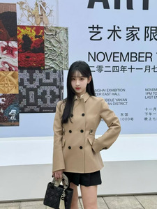 高品质~秋冬短款风衣女轻职风优雅干练翻领双排扣女装上衣外套女