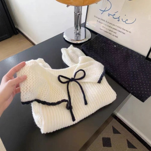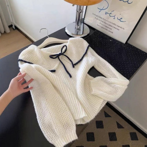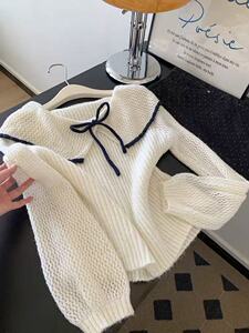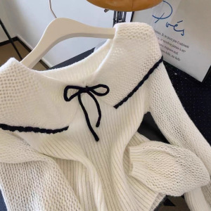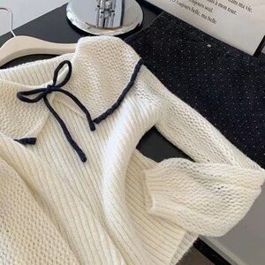 撞色翻领套头长袖宽松毛衣女款2025新款慵懒高级感加厚针织衫上衣