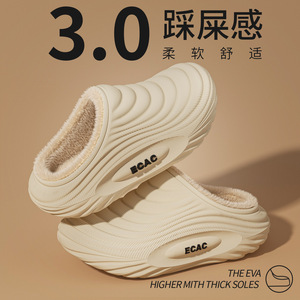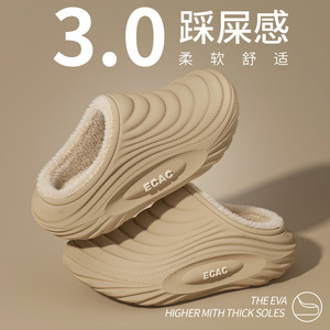 防水棉拖鞋男士2025新款冬季居家保暖室内防滑厚底毛绒套壳女外穿