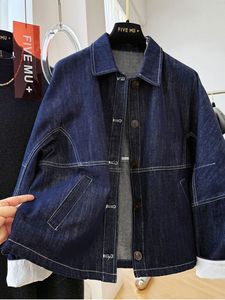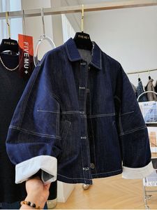港风翻领插肩长袖牛仔外套2025秋冬韩版宽松廓形百搭外套上衣