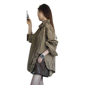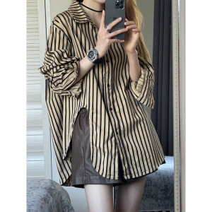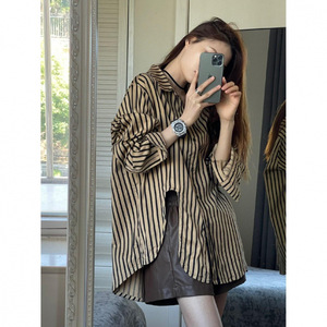 高级感条纹开叉衬衫女春秋季2025新款宽松衬衣设计感小众上衣外套