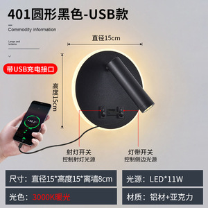 跨境上新USB手机充电LED阅读壁灯酒店床头室内书房卧室墙壁壁灯