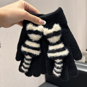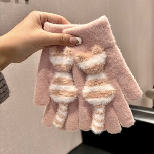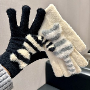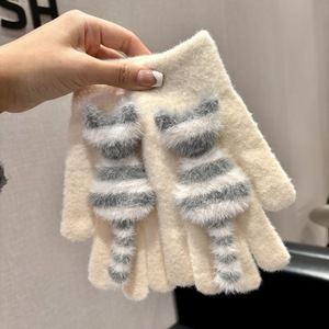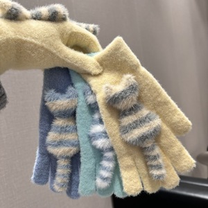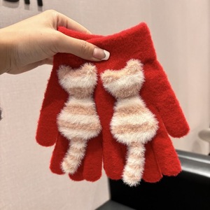 触屏手套保暖女冬季加绒加厚毛线卡通可爱五指学生骑车防寒毛茸茸