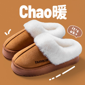 2025新款勃肯棉拖鞋女士秋冬季厚底外穿防滑保暖毛绒半包头拖鞋男