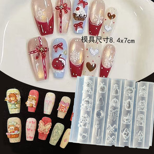 微缩可颂面包甜甜圈造型浮雕美甲装饰 高透模具diy创意雕花胶模