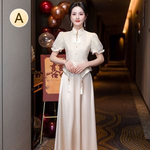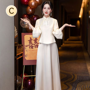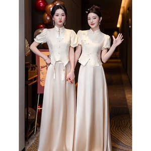 香槟色伴娘服中式礼服女2025新款秋冬季缎面姐妹团旗袍裙平时可穿