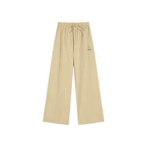 你好卡农 韩系松紧腰兔子刺绣休闲裤女秋季新款高腰显瘦直筒长裤