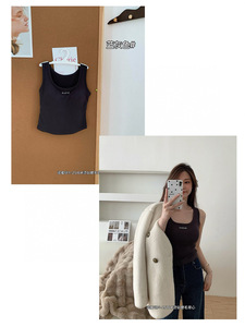 闺蜜哒2516#烫钻磨毛背心女士带胸垫秋冬方领纯色打底衫跨境