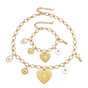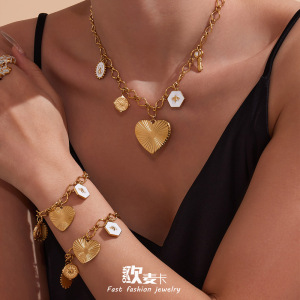 欧麦卡不锈钢批花大爱心多配件滴油项链手链套装欧美嘻哈流行饰品