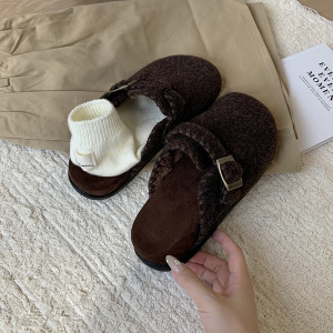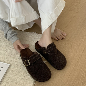 复古亚麻呢子厚底包头半拖鞋女秋冬外穿懒人勃肯鞋平底穆勒凉拖鞋