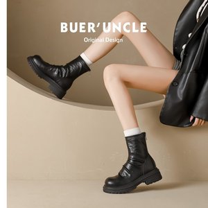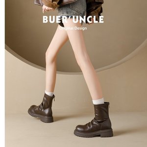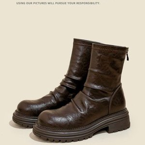 褶皱瘦瘦短靴女2025秋冬新款粗跟堆堆靴厚底英伦风休闲马丁靴女