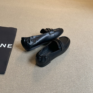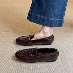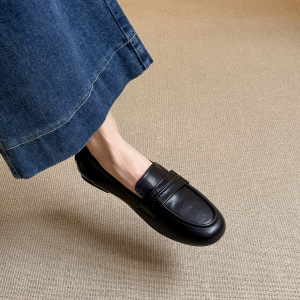 现货~法式复古平底小皮鞋女圆头深口一脚蹬乐福鞋大码女鞋9118-1A