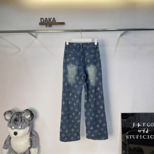 L25秋冬新款复古时髦满印logo高腰直筒牛仔裤