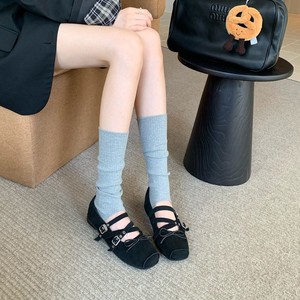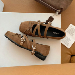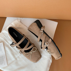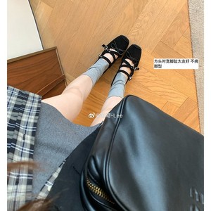 严选网红同款芭蕾风方头增高交叉扣带玛丽珍鞋休闲百搭蝴蝶结单鞋