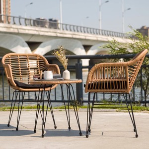 户外藤编椅桌椅组合庭院露天休闲阳台小桌椅室外咖啡厅藤椅三件套
