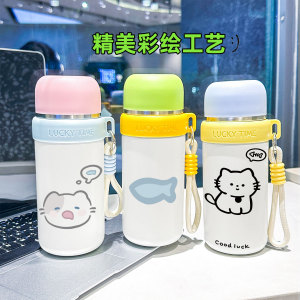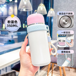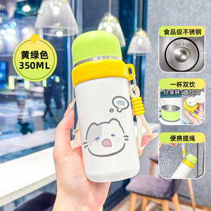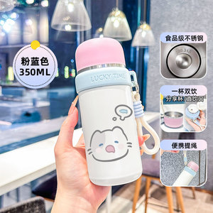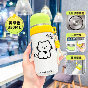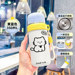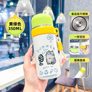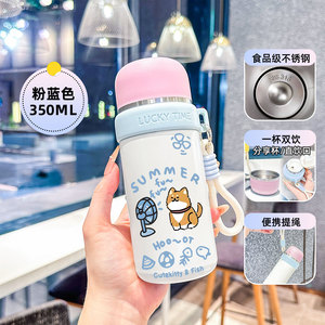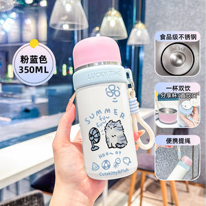 可爱卡通小巧便携双饮保温保冷杯子男女生高颜值上学水杯小众水壶