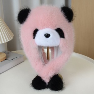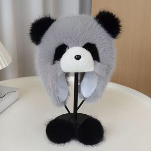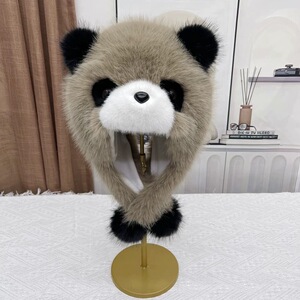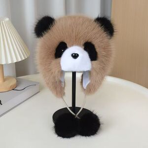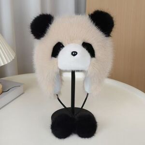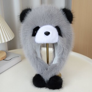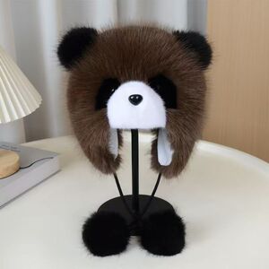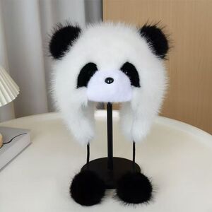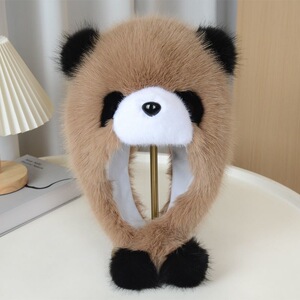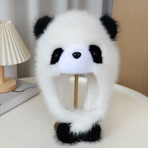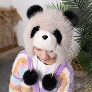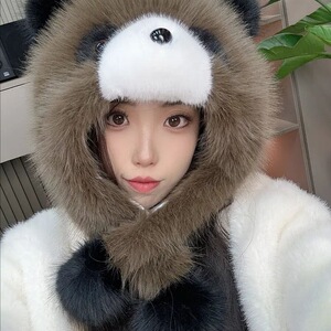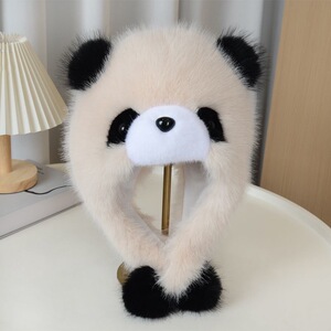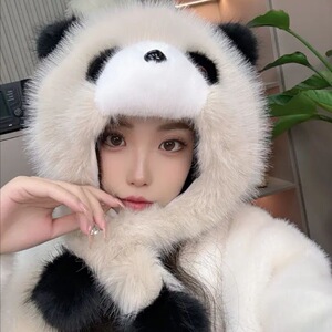 帽子女秋冬季可爱卡通小熊猫护耳帽加厚保暖毛绒套头帽防风雷锋帽