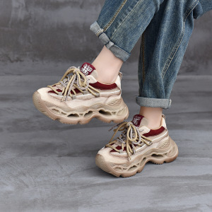 2025春秋新款博主头层牛皮老爹鞋洋气百搭时尚显高暴走不累休闲鞋