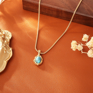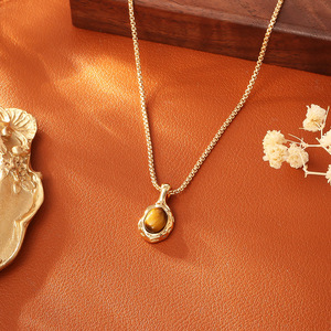 铜镀真金虎眼石蓝松石项链复古时尚高级感洋气简约网红吊坠锁骨链