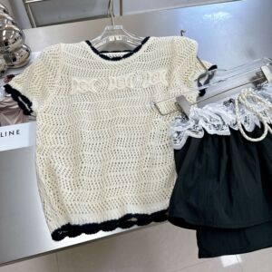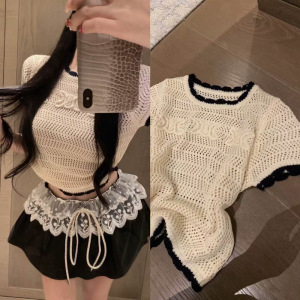 氧气感撞色镂空短袖针织衫女小衫2025秋季新款蕾丝花边半身裙短裙