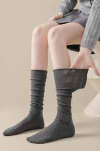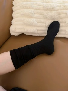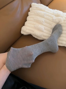 miu系芭蕾堆堆袜子女春秋网眼透气小腿袜韩系卡其竖条中筒袜百搭