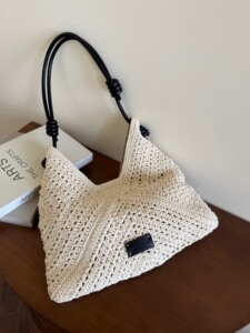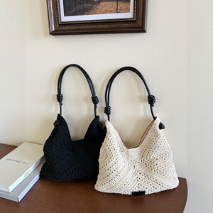 M家 夏季新款慵懒风镂空编织包女森系度假沙滩包单肩斜挎托特包女
