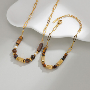 外贸跨境美拉德虎眼石串珠首饰套装轻奢小众高级感项链手链批发