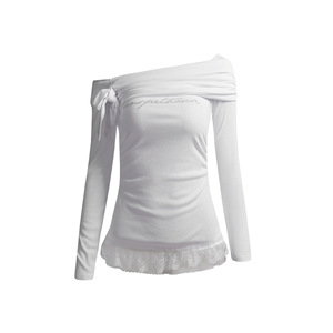 Fudge Pink 25秋季New甜美少女蕾丝花边元素设计长袖T恤