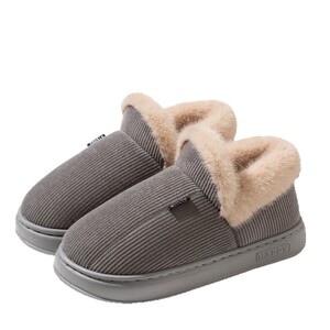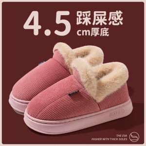 冬季厚底毛绒棉拖鞋女2025新款居家防滑保暖中老年人包跟棉鞋男款