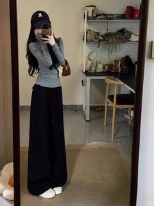 包芯纱洗水】灰色印花针织打底衫女秋冬内搭毛衣设计感长