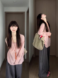 韩系U领针织衫上衣2025早秋季新款软糯温柔慵懒风套头长袖小衫女