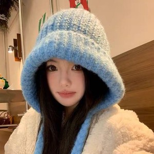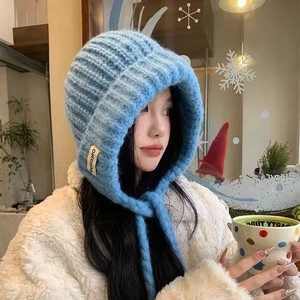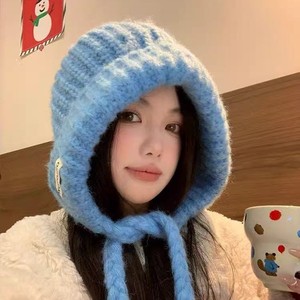 外贸跨境热卖批发热销现货日系韩版蓝色巴拉克拉法帽女2025年冬季保暖针织毛线帽显脸小护耳帽子