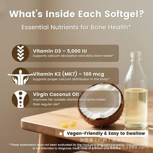 跨境TK爆款维生素D3&K2软胶囊Vitamin D3&K2椰子油软胶囊源头工厂