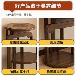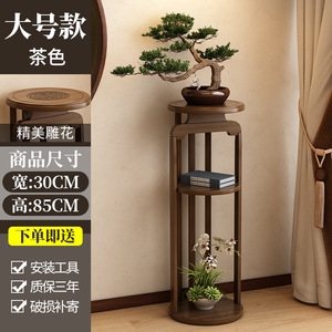 新中式花架家居置物博古架客厅落地圆形花盆架家用玄关阳台花托架