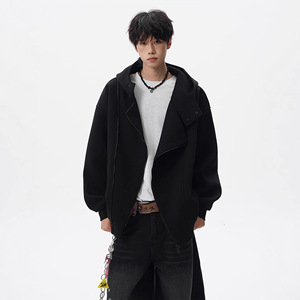 重磅空气层连帽卫衣男女秋冬季高街百搭运动双拉链情侣开衫外套潮