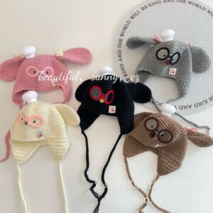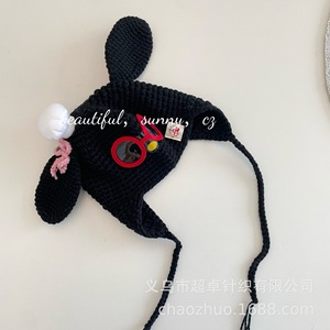 秋冬儿童帽子男童女童长耳朵眼睛手工护耳帽