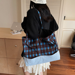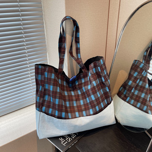 休闲帆布包大容量女包2025新款简约帆布包慵懒风格纹单肩购物袋包