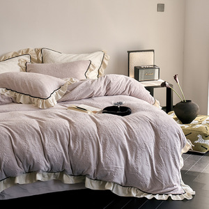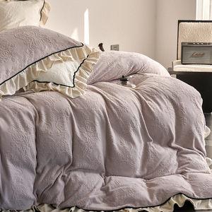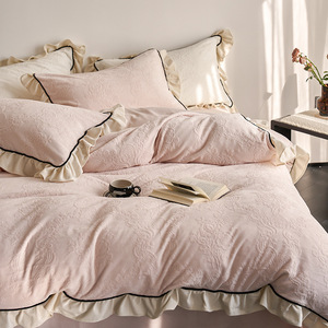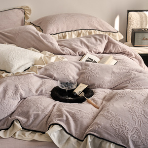 简约轻奢少女心冬季加厚牛奶绒四件套雕花保暖床上用品床单床笠