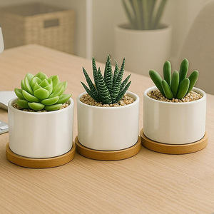 多肉专用盆陶瓷带托盘亚马逊桌面小盆栽小号白瓷盆迷你白色小花盆
